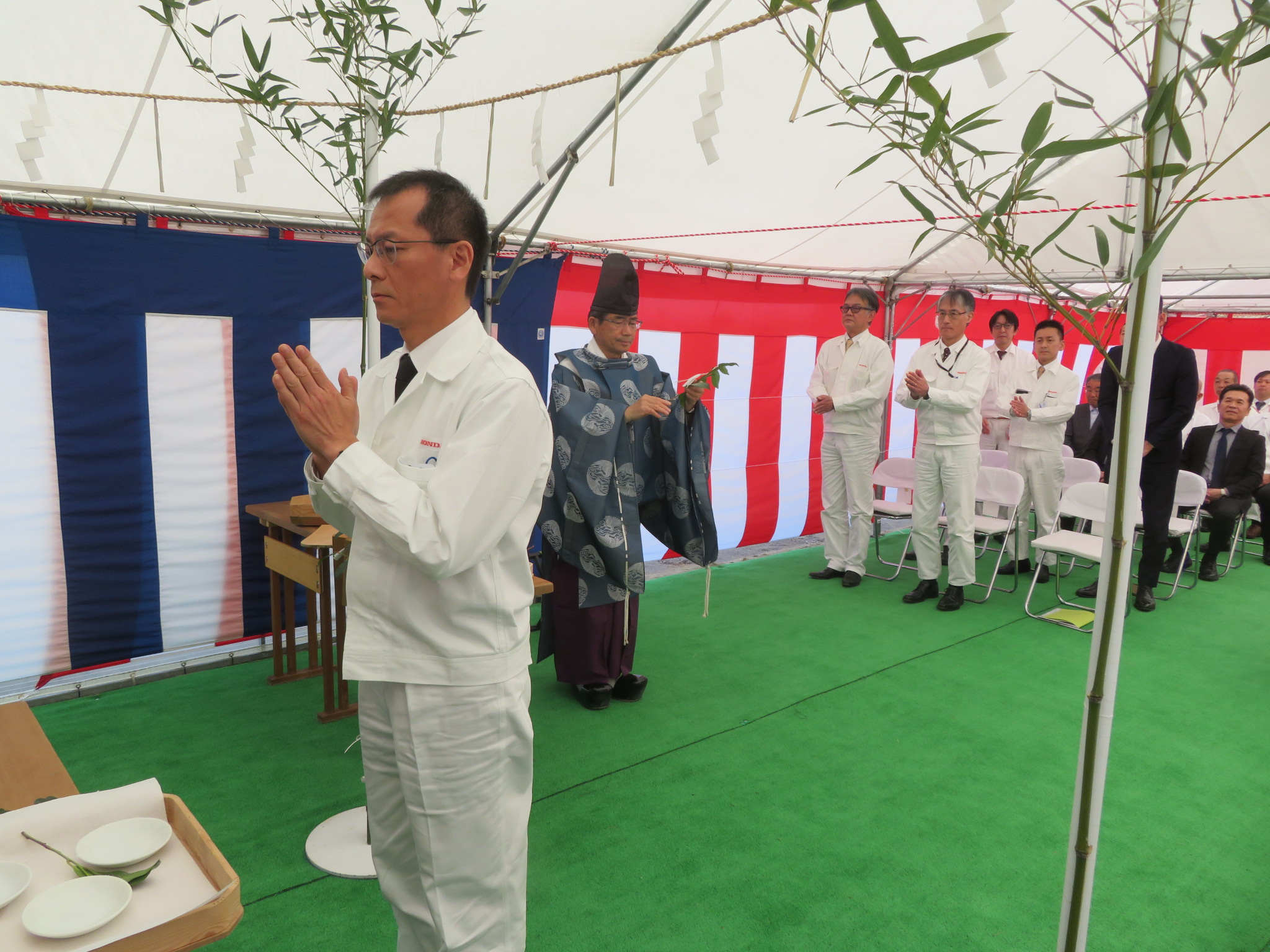4月3日(金)、ホンダ太陽敷地内において「厚生棟建替工事」の起工式を執り行いました。当日は、ホンダ太陽代表をはじめ関係者が出席し、工事の安全と無事な完成を祈願いたしました。新しい厚生棟は、従業員の利便性向上と、より働きやすい職場環境の構築を目指した建物となる予定です。近隣の皆様には工事期間中、ご不便をおかけすることもあるかと存じますが、安全第一で進めてまいりますので、何卒ご理解とご協力を賜りますようお願い申し上げます。